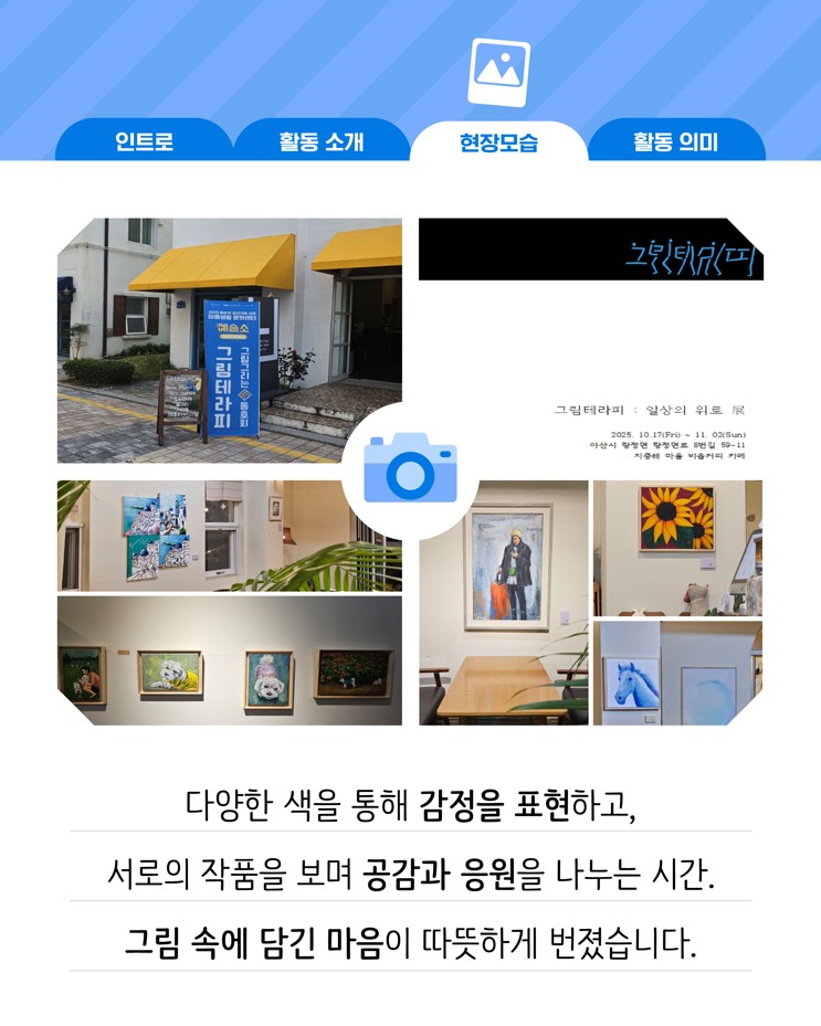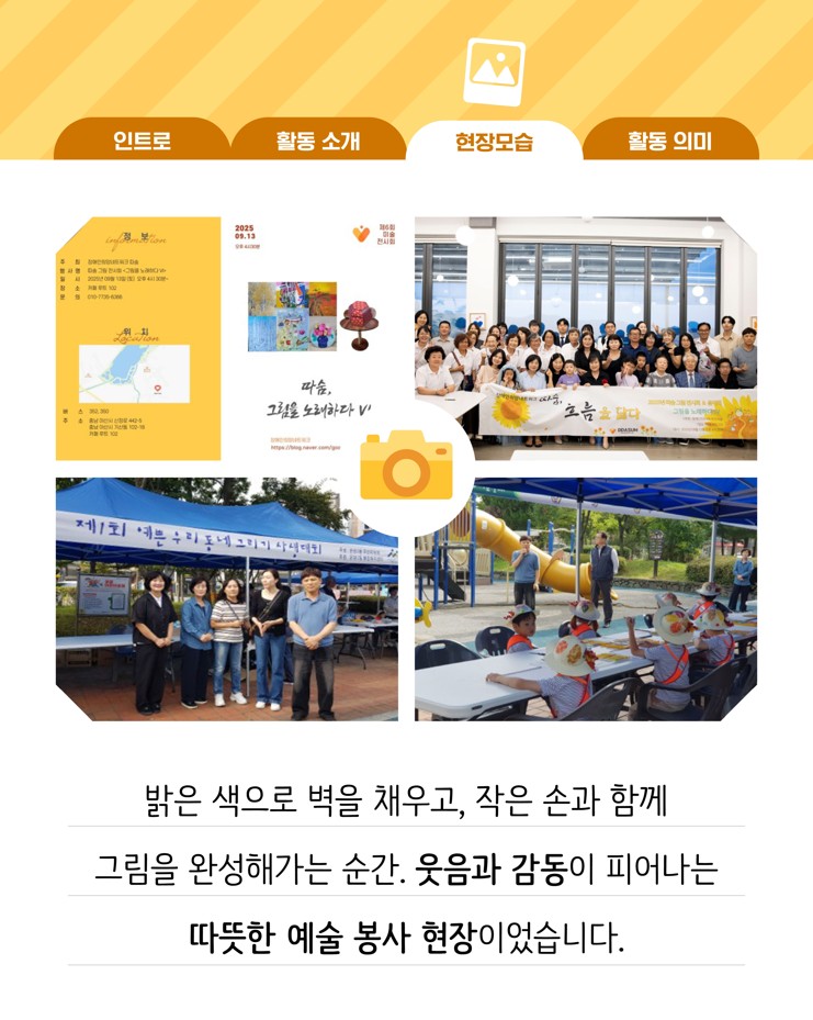 이번 봉사활동은 지역 예술인과 동호회가 자발적으로 참여하여 일상 속 문화예술 확산이라는 <예술소>의 취지를 이어가는 뜻깊은 시간이 되었습니다.