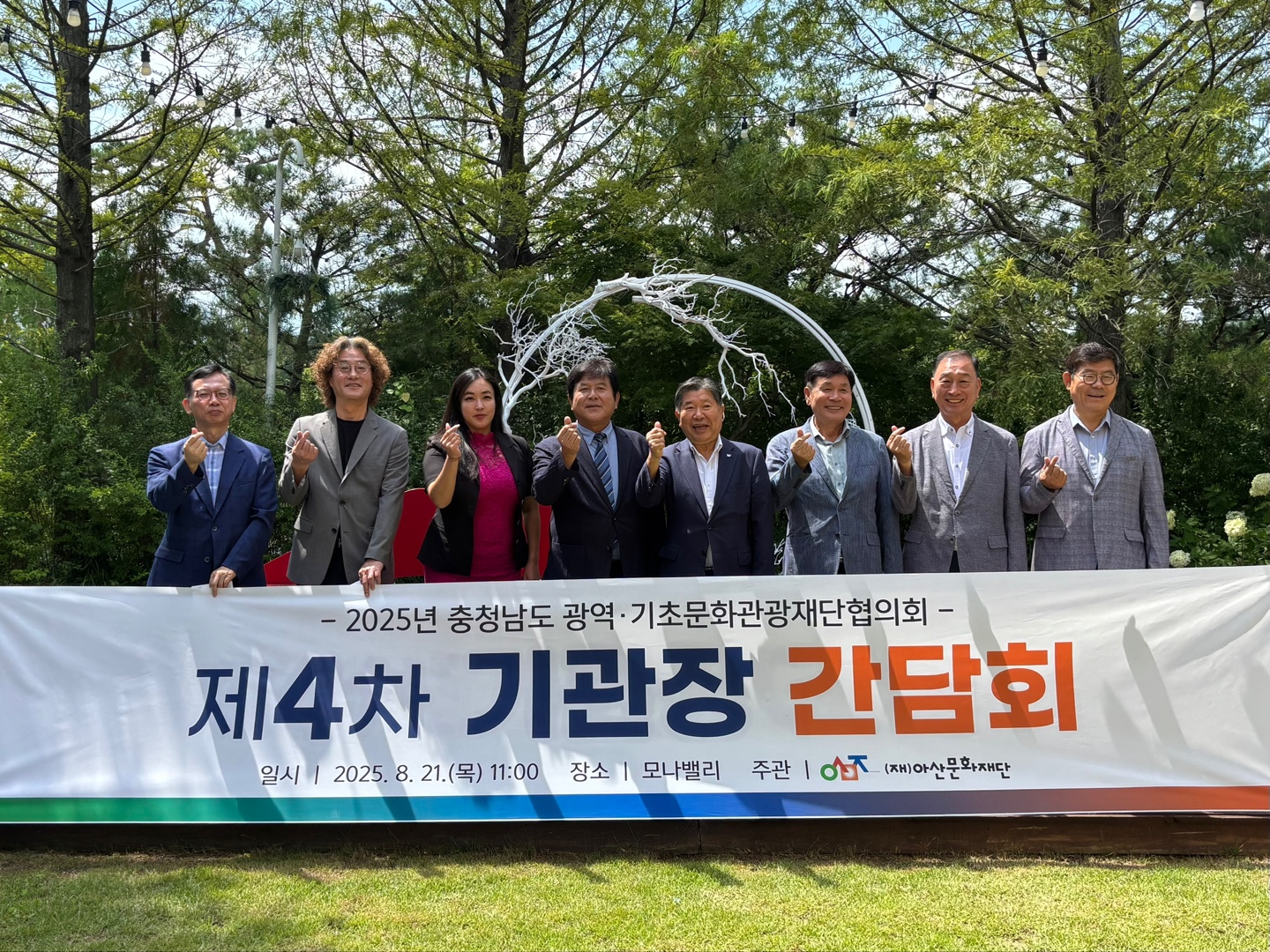 충청남도 문화관광축제재단 협의체는 8월 21일(목) 모나밸리에서 아산문화재단이 주관한 제4차 기관장 간담회를 개최했다. 이번 간담회는 충남 지역 문화ㆍ관광ㆍ축제재단 기관장과 실무자들이 한자리에 모여, 협의체의 ESG 경영 방침을 공동선언하고 향후 추진 전략을 공유하는 자리로 마련됐다.